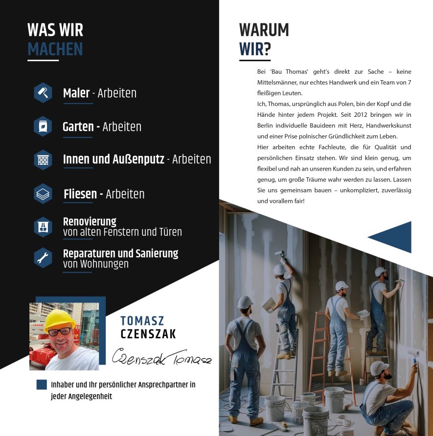 Telefon: +49 30 34394209Mobil: +49 17672168048Mail: info@bau-thomas.de